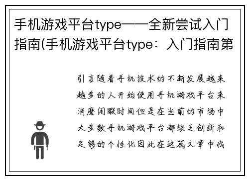 手游宝(重磅推荐:最火手游集结!)手游宝是一款集成了众多优质手游的应用软件,为广大手游爱好者提供了便捷的下载和安装途径。通过手游宝,用户可以在众多手游中自由选择,享受其中带来的游戏乐趣和精彩体验。 手...